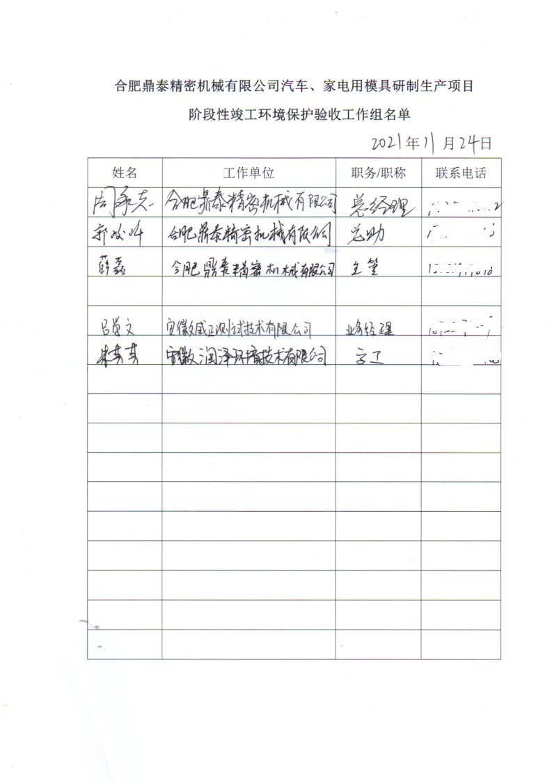 合肥鼎泰精密機械有限公司建設汽車、家電用模具研制生產項目階段性驗收監測報告表.pdf